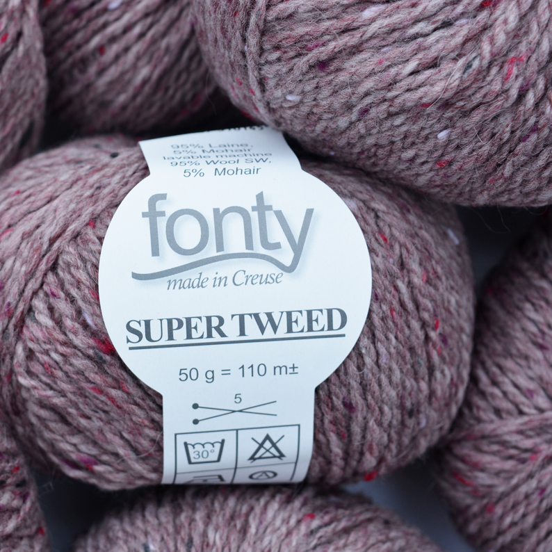 Les mitaines se tricotent avec des aiguilles n° 4, avec la belle laine Super Tweed de Fonty, composée de 95 % de laine fine et 5 % de fibre de Mohair.